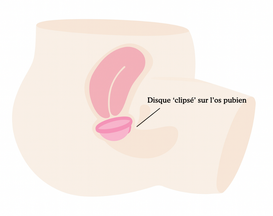 Il est maintenu naturellement par l’os pubien, sans effet ventouse.